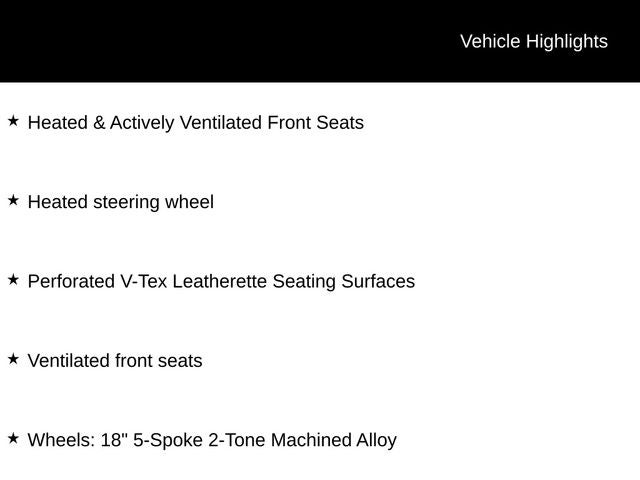 See Dealer for Details, Active Cruise Control, AM/FM radio: SiriusXM with 360L, Auto High-beam Headlights, Automatic temperature control, Exterior Parking Camera Rear, Front dual zone A/C, Fully automatic headlights, Heated & Actively Ventilated Front Seats, Heated steering wheel, Perforated V-Tex Leatherette Seating Surfaces, Ventilated front seats, Wheels: 18 5-Spoke 2-Tone Machined Alloy.