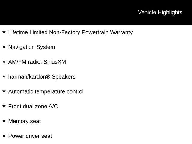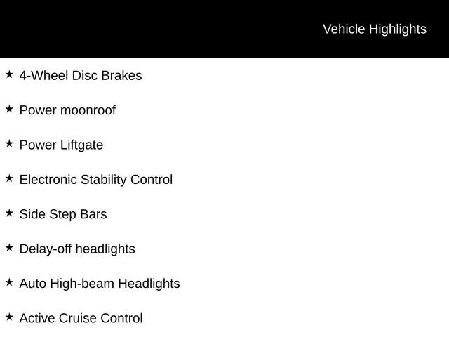 Lifetime Limited Non-Factory Powertrain Warranty, AWD, 4-Wheel Disc Brakes, Active Cruise Control, AM/FM radio: SiriusXM, Auto High-beam Headlights, Automatic temperature control, Compass, Delay-off headlights, Electronic Stability Control, Front dual zone A/C, harman/kardon® Speakers, Heated and Ventilated Front Bucket Seats, Heated front seats, Heated steering wheel, Memory seat, Navigation System, Power driver seat, Power Liftgate, Power moonroof, Side Step Bars, Syntex Premium Leatherette Seat Trim, Ventilated front seats, Wheels: 19 x 7.5J Alloy.